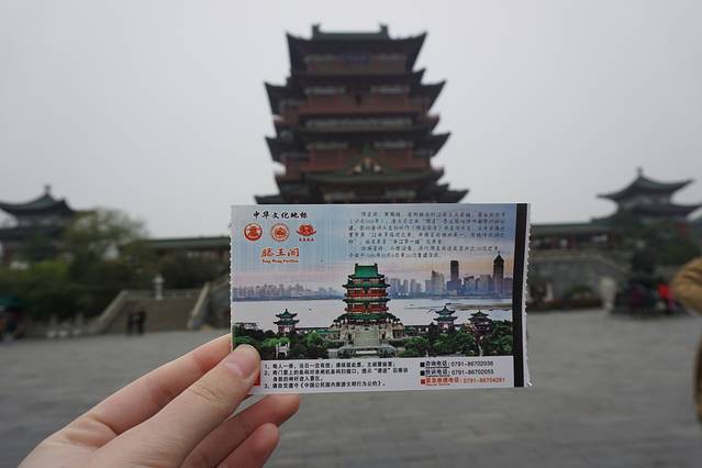 因为下一天一早要赶火车去庐山,我俩这晚定在了离火车站不远的锦江之星。随身携带去庐山的装备太多,本来打算背包直接去滕王阁的我俩决定先去趟酒店卸下负重。地铁八一馆下车在做205洪都南大道下车就可以看见了。 再坐205到终点站省科技馆步行一段距离就可以看见滕王阁了。滕王阁的学生票是25元,售票处就古色古香的,立马感觉到了古代。