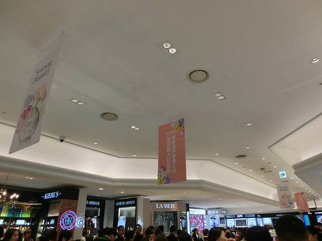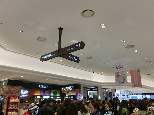 可以看到 真的是人山人海。以及专柜很多 也很全。还有就是 抬头看的话 那里会有指示牌 可以找找路 厕所啥的。比较方便~以及免税店最近有的优惠活动也会挂在上面宣传的哦