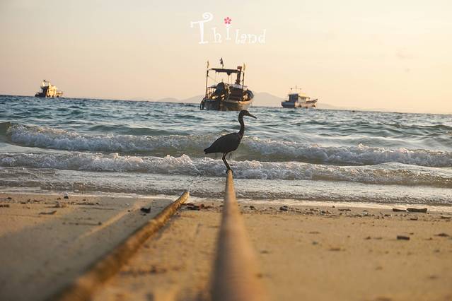 一只水鸟淡定的落在栓渔船的绳子上,淡定从容。早上的浪有点大、阳光弱,所以海水不是那么美丽。等上午11点左右太阳高升时,水就会美的像块琉璃。