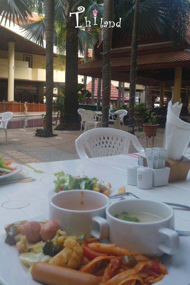前台是个看起来像欧洲人的帅哥,第一次在泰国发现帅哥,那也是相当不容易的。2点才开房?好吧,那我们先饭饭咯。中午的餐比曼谷高大上很多,服务员虽然也是小黑,但有点帅哦,还一直热情微笑的服务。西餐也高大上了很多,可惜啊可惜,我是吃货,向来看到美食就下叉子,没有拍照的习惯。