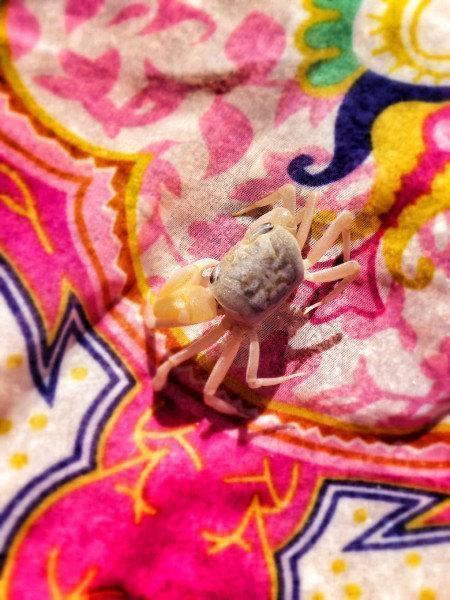 我还抓了一只小螃蟹,给它照了照片就放了