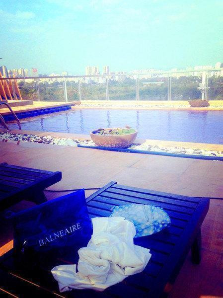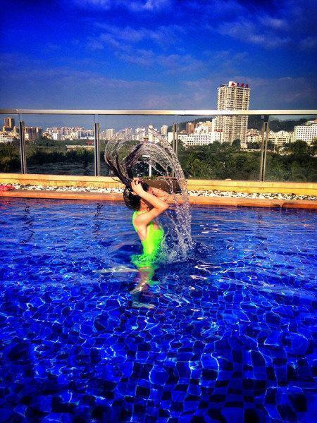 酒店泳池在四层,其实水还是挺凉的。。。为了拍两张照片,老子拼了好么