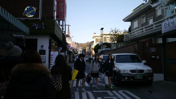 感觉真不错,有点北京胡同的感觉,但是是上上下下的坡,纯韩国文化