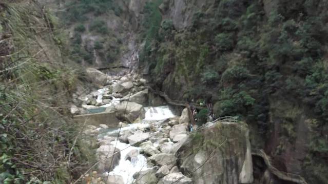 又是大早晨的,所以从车子里远远望去地上是一片黄,山上云雾缭绕,山下的小河沟水缓缓流淌,没有比这儿更幽静更美的地方啦。到达入口,检完票就可以进去走上路了。徽杭古道是古时候徽商经商必须经过的地方,路在山上,又与一般的登山构造不一样,有平坦的大道,也有山绕着山走,还有经过崖壁的,很刺激,很过瘾。山里还种有茶树,一排排美不胜收,也开了很多不知名的山花,整天大路的旁边始终有一条小河跟着,里面的水很清很凉,应是山上流下来的。整个行路过程会经过几个标志性的地点,那儿有农家菜,店家,可提供住宿,饮食。到了一个山头也就是走了一半,接下来就是往浙江走的下坡路,沿途风景一样好看,天气也变得晴朗了,快到上下的时候,会有一些小村落,里面的人不受游客打扰,各干各的,真真是世外桃源,整个行程平均4个小时左右,具体情节因为时间关系,不一一回忆,请看附图。