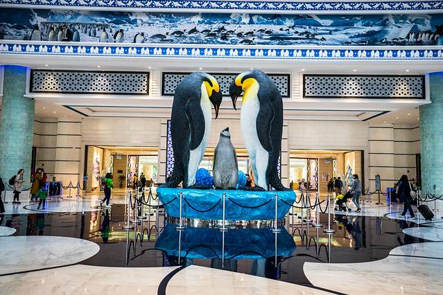 下午3点多从广州出发,差不多两个小时的车程就抵达【珠海长隆海洋王国】。当晚入住的是充满“萌味”的“企鹅酒店”。酒店的外观颜色缤纷多彩,酒店大堂也有两只萌萌的企鹅。