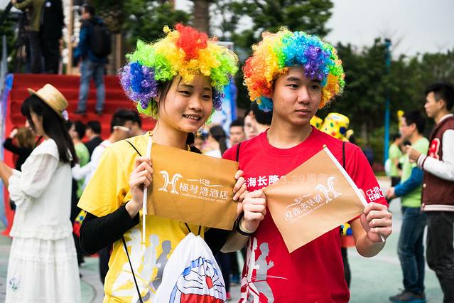 “同 衫”,即是穿同样一件衣服,这样在坊间称为“撞衫”。“撞衫”如果是发生在名人、明星,或陌生人之间的话,那么在双方遇见的一刹那,必是一脸大写的尴尬。 但是【珠海长隆海洋王国】却把这个“尴尬”变成了“惊喜”,意思即是如果二人以上穿着同样一件衣服或裤子,最高可享受6折购买海洋王国门票。当我和闺蜜知 道这个消息之后,马上穿起了我们的闺蜜装,这样,我们将近省了一半的钱入了园,这个是不是特大的“惊喜”?