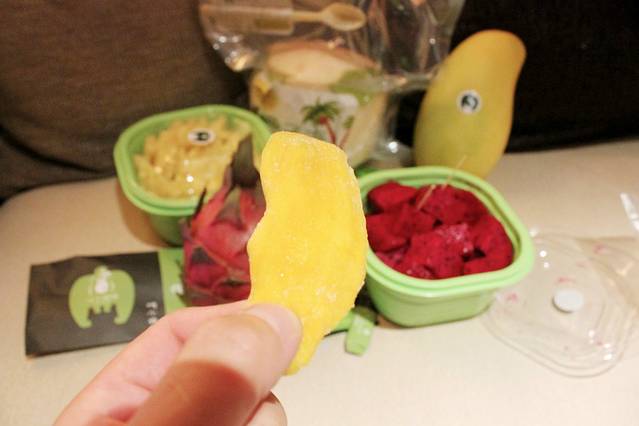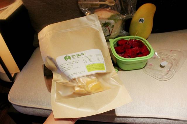 芒果干上面黏附着一颗颗的白砂糖,刚好让芒果的酸度和蔗糖的甜度中和了,让芒果干口感酸甜清香,甜而不腻。