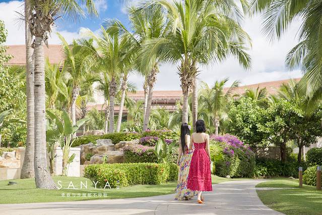 亚龙湾瑞吉度假酒店不仅一线海景,绿化和园林感也是一路南国风光,成排的椰子树以及盛开的三角梅,让你能完全忘记现在是冬季。