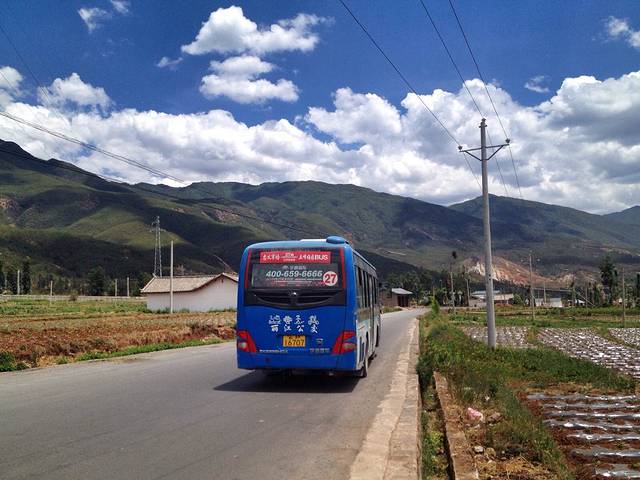 如果时间充裕,很推荐27路.古城附近的白龙市场上车,机场路口站下车,路程大概要1小时,票价3元.下车后沿村路一直走很容易找到去机场的指示路牌.