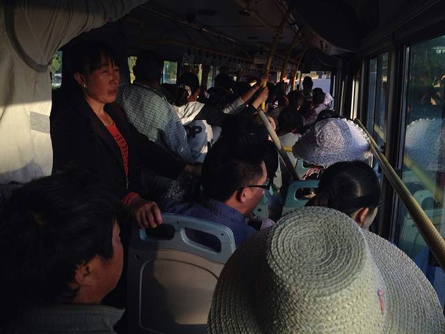 从火车站出来就有8路专线可以到达三塔寺景区,因为是工作日,又值早高峰,车厢内略显拥挤.