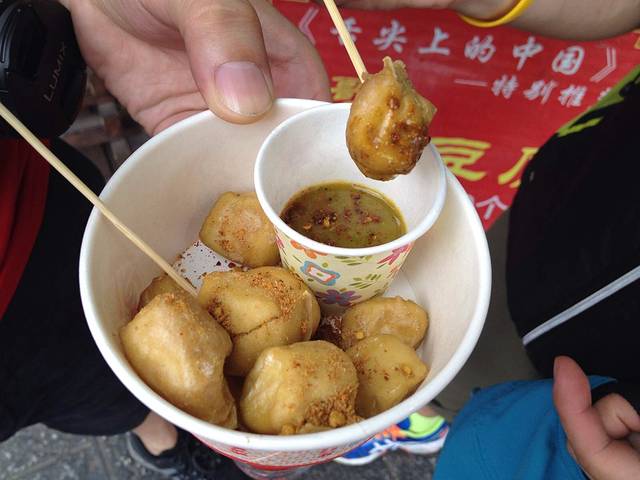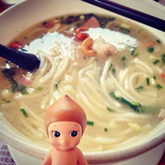 放下行李就跟同伴商量进古城觅食,先来了份耙肉饵丝.其实我还是有些儿吃不惯,除了觉得有点儿粘,油也有些大.