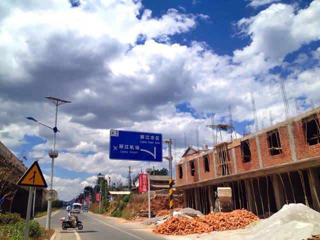 沿村路走5分钟可以看到这个指示牌,按牌子指向走10分钟就可以到达丽江机场了~