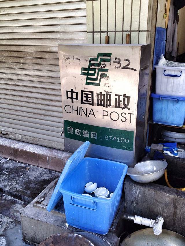 到丽江先找邮局寄明信片,也不知道与饭馆融为一体的这个邮筒靠谱儿否.