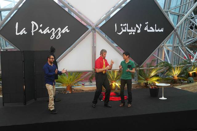 同伴被演员叫到台上去当助手,旁边那位是印度人。
