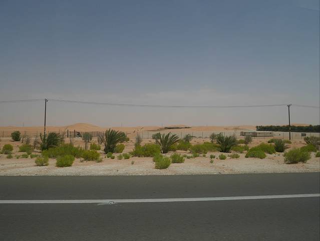 出了阿布扎比城区全是一望无际的沙漠