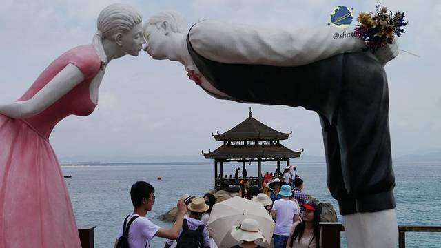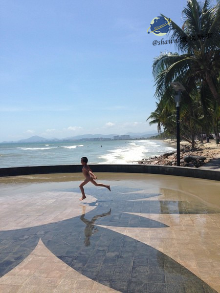 三亚湾海月广场:其实就是一片平整后石头砌筑的平地,直接连着大海,海浪大的时候会直接扑上广场,很多本地人喜欢在这里玩,尤其是小朋友,光着pp的穿着救生衣的在广场上玩水,一句话,诞生大海儿女的地方。拍照不错,能够左右拍到三亚湾全景。视野开阔。