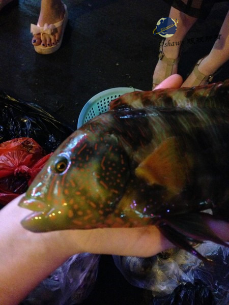 下面是晚上和同车的大叔和一堆小两口去第一市场吃饭,同车大叔前天在下岗职工吃的,被坑,一条普通斑鱼要了他们200.第一市场梅姐川味海鲜店的老板亲自带着买菜,老虎斑才60元,,,业界良心啊