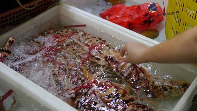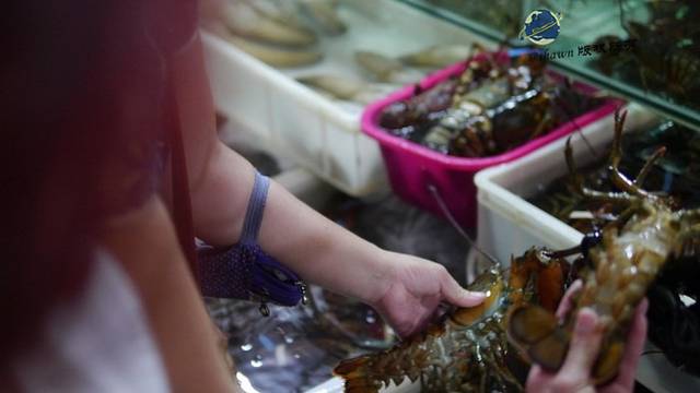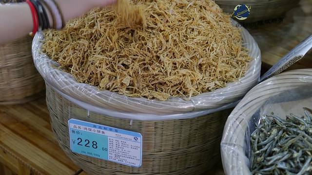 梅姐川味海鲜加工店的老板,在挑货,,后面的大婶都看傻了