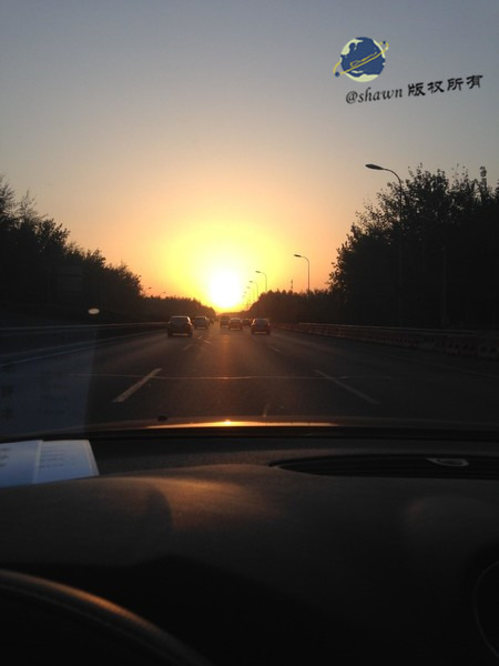 第一天,请了假,载着小伙伴,迎着出生的太阳,开向首都机场