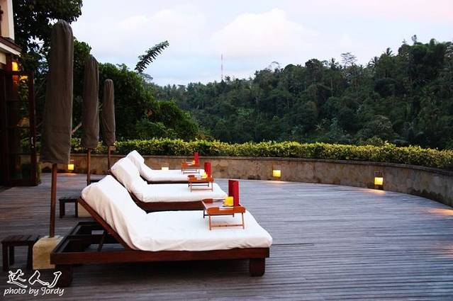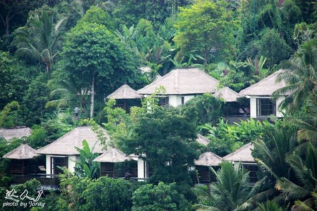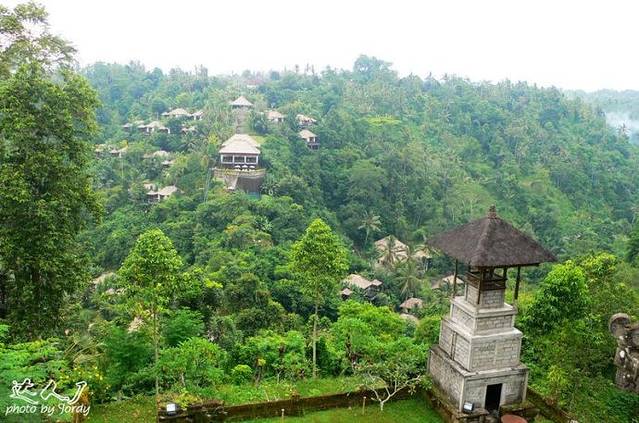 我是坐着轨道滑轮从酒店大堂来到我的客房的,记忆中一路的青色,覆盖了我的眼帘。这是一种多么新奇的体验啊,至少是我的第一次。新巴比伦国王尼布甲尼撒二世为治愈爱妃的思乡病,在“半空中”建起了满园春色。悬着的花园本应举世无双,难道世界七大奇迹的壮举,在印度尼西亚巴厘岛的乌布森林得以重见天日?