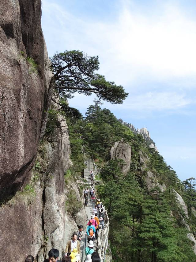 这就是有名的迎客松了,其实黄山上长这样的松树挺多的