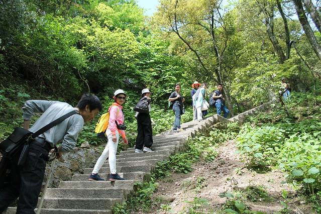 头一天爬山几个小时,第二天绝对腿酸,下山时腿打颤都是正常的,下山路陡,必须要小心的走,最好带上拐杖,切忌为了拍照放松脚下。