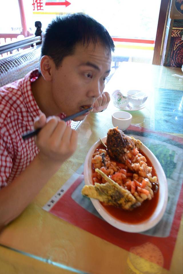 松鼠鱼,这条鱼68块钱,味道不错,看朱朱先生吃的屌丝样就知道。店内装修也不错,很多游客,也有很多外国人