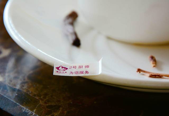 每桌菜都会贴一个几号厨师为您服务,看起来很正规也很贴心