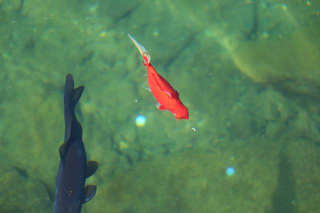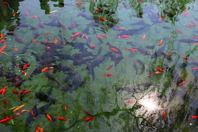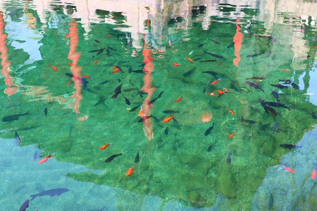 当走到趵突泉景区最中心处时,水很清,鱼儿在欢快的游着、、、