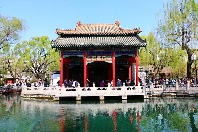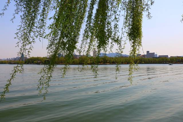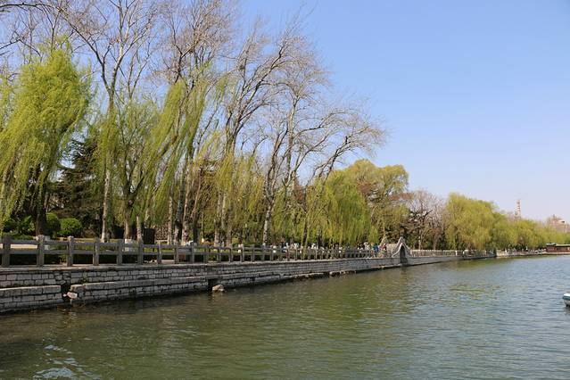 刚进景区内,到处都是绿色,满满春天的气息,但水位很低,而且水也有点发臭,听济南本地人讲,去年冬季到现在少有雨水,济南地下水位已经是二十几年最低点,难怪呢