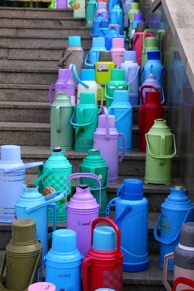 在学校开水楼门口看到的一幕,我和我的小伙伴们都惊呆了,一下子把我的思绪带回了初中时代,毕竟我上大学来还没用过开水瓶~~~