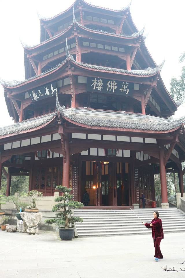 下了长江索道可以步行去湖广会馆,黄色的徽式建筑,上面有一家江湖饭的餐馆。