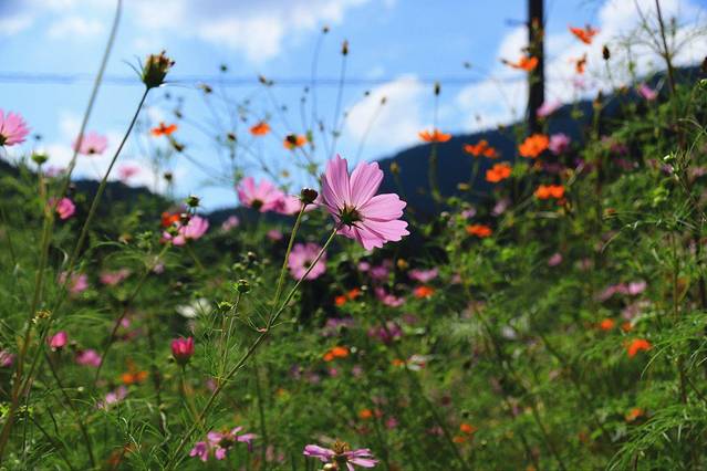 走出三千院,向车站的另一方向寂光院缓缓步行,沿路上的各类花草和田园风光令人流连忘返,索性用相机一一记录下来。