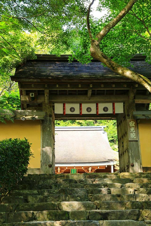 寂光院,据传是公元594年由圣德太子所建。它作为一座尼姑庵而颇为有名。具体历史可以查询度娘。