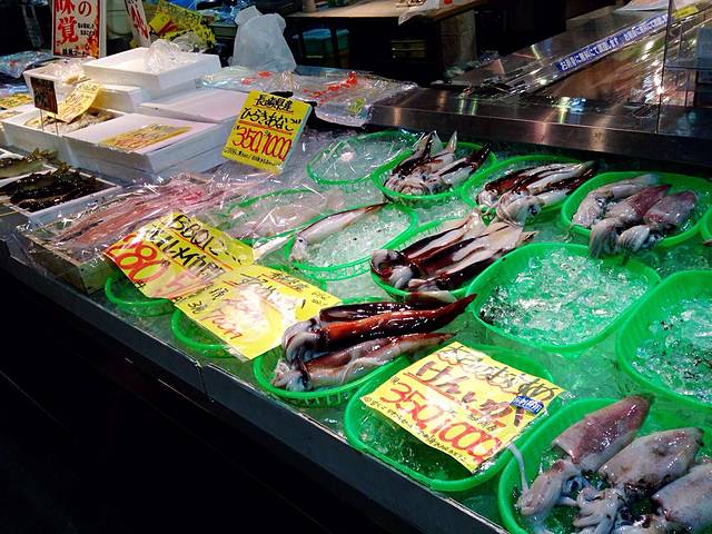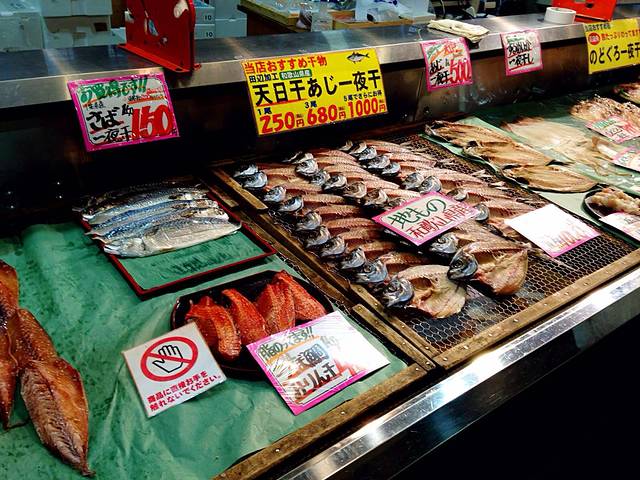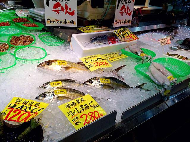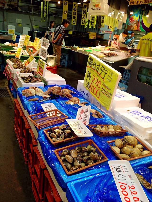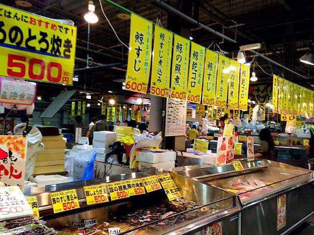 坐了2个半小时的JR,下车也到中午了。对于吃货来说,总要填饱肚子再游览吧,考虑到在海边,不管怎么样,海鲜市场是必经行程之一。坐上当地的公交到达Toretore海鲜市场,这是白滨最大的市场,里面除了新鲜海鲜,还有各类海鲜干货,水果以及食堂餐厅,有趣的是市场里一直循环播放着主题曲,“Toretore……”和各摊位卖主的吆喝声混杂成一首独特的乐曲,别有风味。