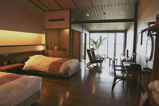 酒店的公共大浴池及露天温泉皆采用引进自家天然泉源无限提供放流式泉水。露天温泉有两个,一个使用的是上百年期间曾用来腌制和歌山南纪名产的「梅干」的"Hon-ma-mon"(和歌山方言「真货」的意思)巨大木桶,又称为梅樽。另一个是比较普遍的岩石风吕。公共汤露天风吕建造在山上,同样面朝大海。泡着温泉,听着海浪拍打岸边的声音,还可以看到蔚蓝宽阔的海面,真是身心的彻底放松啊。