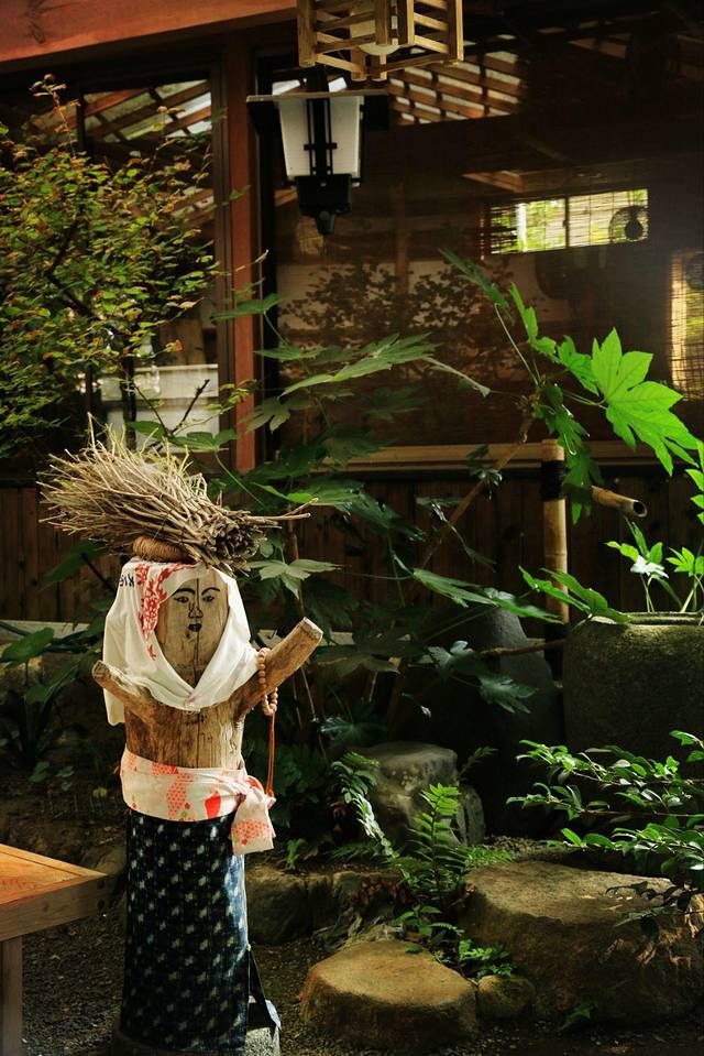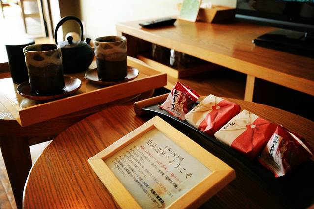 玩累了是时间去酒店了,坐上巴士到草原之汤,酒店的门就隐藏在这不起眼的小径尽头。门口早有工作人等待迎接了,笑容可掬地问好后带领我们进入酒店内部,经过了内庭花园,就来到了前台,脱了鞋后进入酒店。酒店内部都是赤着脚行走,包括坐电梯到房间,去泡温泉都是赤脚在地板上行走,这着实让我们感到有点不适应。算了,入乡随俗吧……