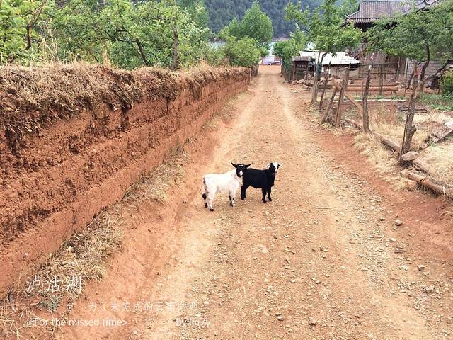 再往下走,就是这样的路,到女神湾的湖边。路上有两只傻乎乎的羊咩咩一直跟着我们走。