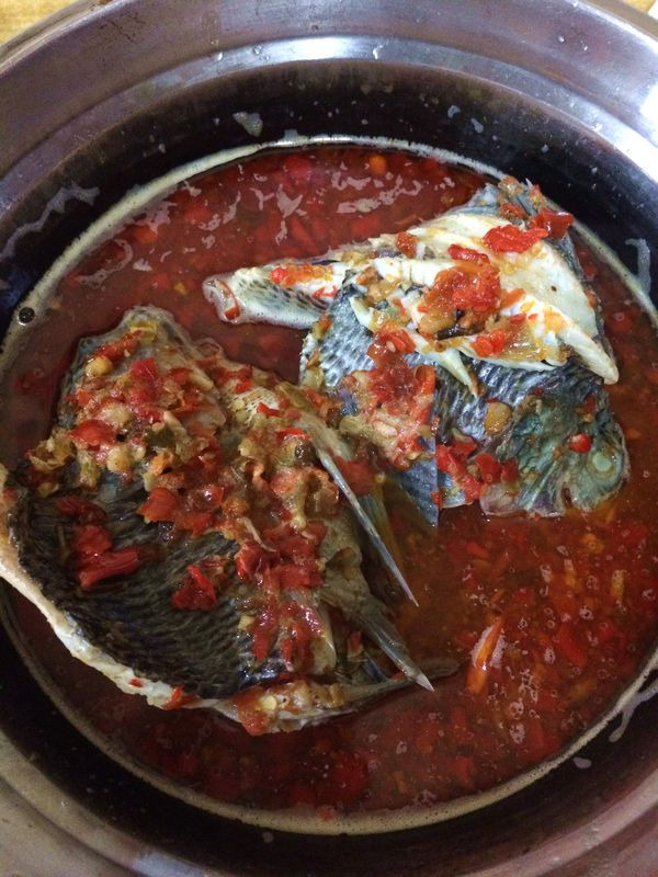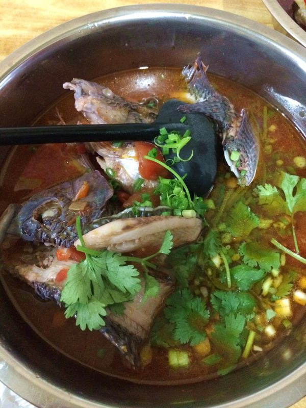 当时我们去的时候,罗非鱼有两种做法,要么做成辣的,要么是加番茄口味。