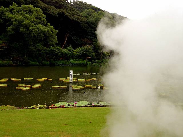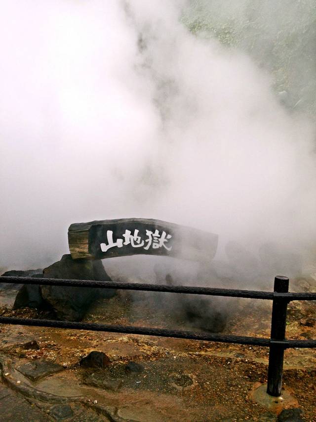 可能是由于天气原因,下着小雨,湿冷的空气中弥漫着硫磺味,搞得人头晕。最后我们放弃了血池地狱和龙卷地狱的观赏,直接打道回府了。