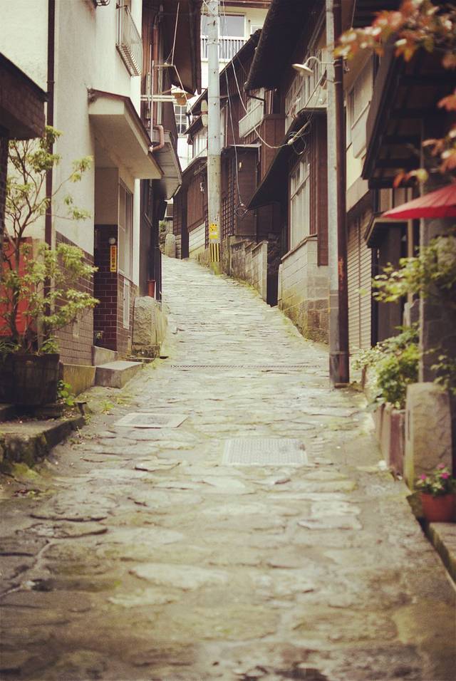 中午时分简单地办完了旅馆checkin,同样寄存了行李后,满怀好奇心和新鲜感跟着街道上的指示牌走向大受女性喜欢的“汤之坪”街道。