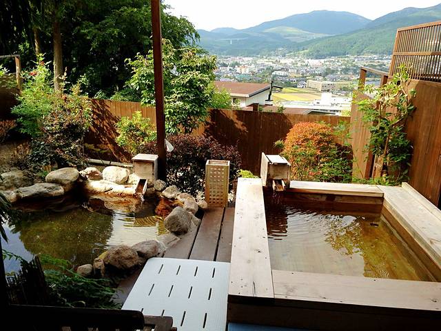 每间套房都自带两个露天风吕:柏木温泉浴池和岩石温泉浴池,供游客私人享用。后院山上还有两个室内和室外公共温泉浴池,这环境做到了让人放松身心,消除疲劳感。