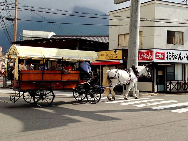 下午2点回到了由布院后,在小镇上随便吃了一些小食,取回行李。考虑到今晚入住的吾亦红山庄在半山腰,拖着行李上山是件困难的事情。我们临时决定在车站前叫了Taxi直奔山庄。