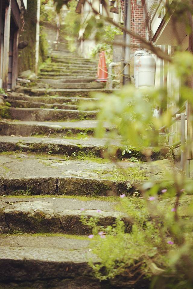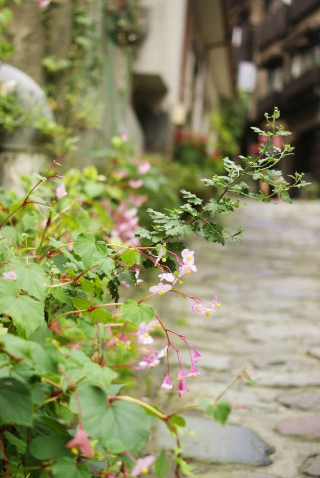 这是一个宁静安详的小村,沿着石铺路往上,可以听到花合野川溪水流淌的回声,街道上根本找不到一位外地游客的身影。这样的地方更有利于我和Rainbow的摄影创作,于是乎拿出了封存已久的定焦镜,不停地按着相机快门