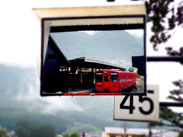 早晨在秀峰馆用完丰盛的早餐后,提着行李前往由布院站,寄存好行李后,正当我们在JR路线图前仔细研究怎么乘坐时,突然身后传来一位中年日本男子的声音:“你们是要去大分站吗?”“不是,要去汤平”我说。然后他很热情详细得告诉了我们下一班车在2分钟后到,停靠在1号站台,坐两站就到汤平。
