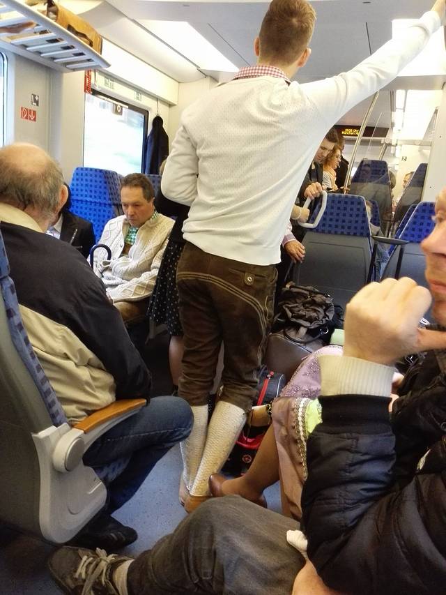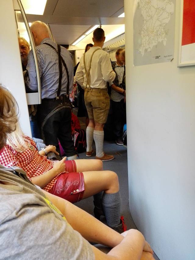 一上车就感受到啤酒节拥挤的气氛。大家都跟我一样聪明啊!本地人,外地人,怎么都从这里上车呢?!刚上车就这样挤了,没座位。