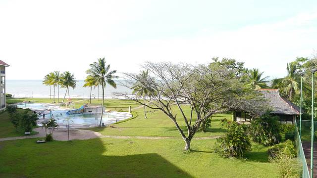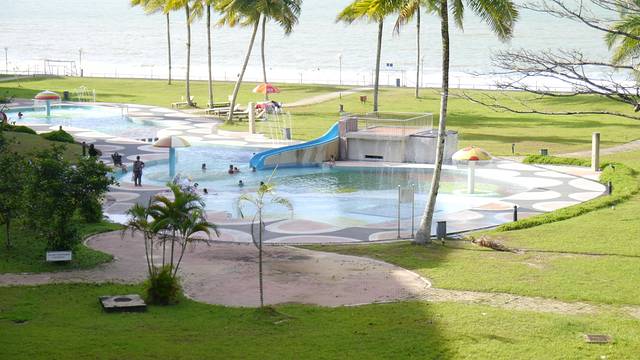 忘了这个酒店叫什么名字了,在海边有自己的私人沙滩,沙滩不大,环境还行