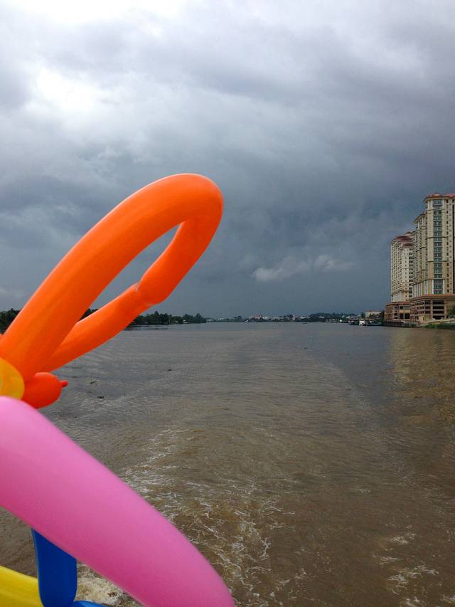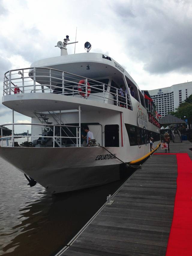 在砂拉越河边,跟同行的伙伴加上一些游客,包了一艘游艇,感受一下砂拉越母亲河的风貌