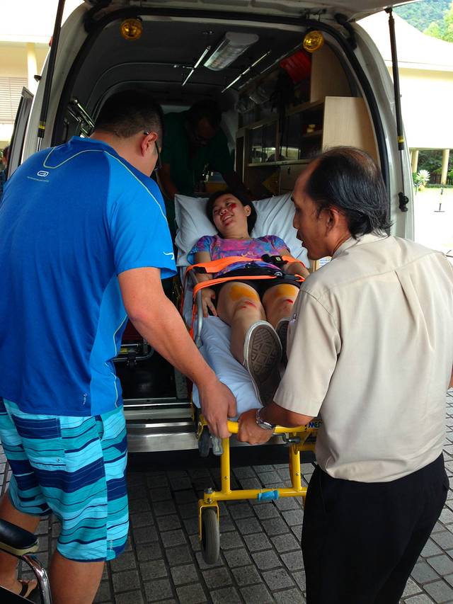 出师未捷身先摔,长使汉纸泪满襟啊,同行的女汉纸一不小心跌倒了,需要亲亲才能起来= = 于是就去了医院,心疼