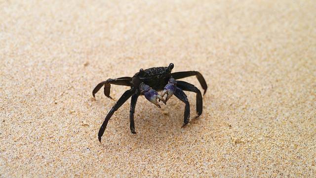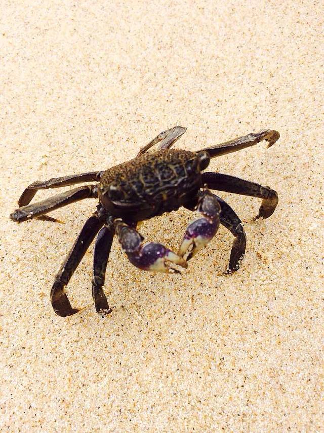 一直蠢萌蠢萌的螃蟹,有蓝色的钳子,给他拍照的时候还竖起眼睛